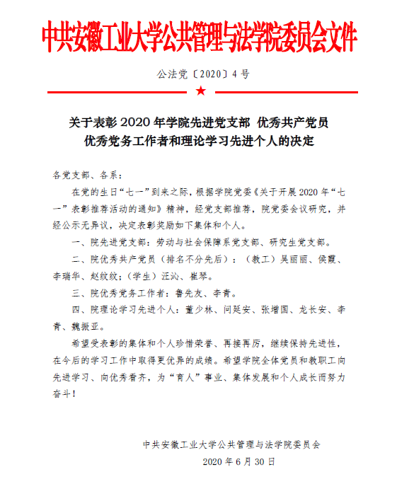 关于表彰2020年海豚直播 先进党支部优秀共产党员优秀党务工作者和理论学习先进个人的决定