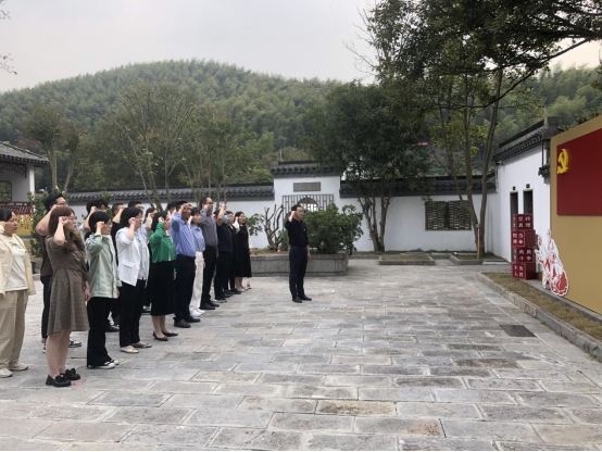 党委书记路壮志带领下,面对着鲜红的党旗,再一次庄严宣誓,重温入党誓词。