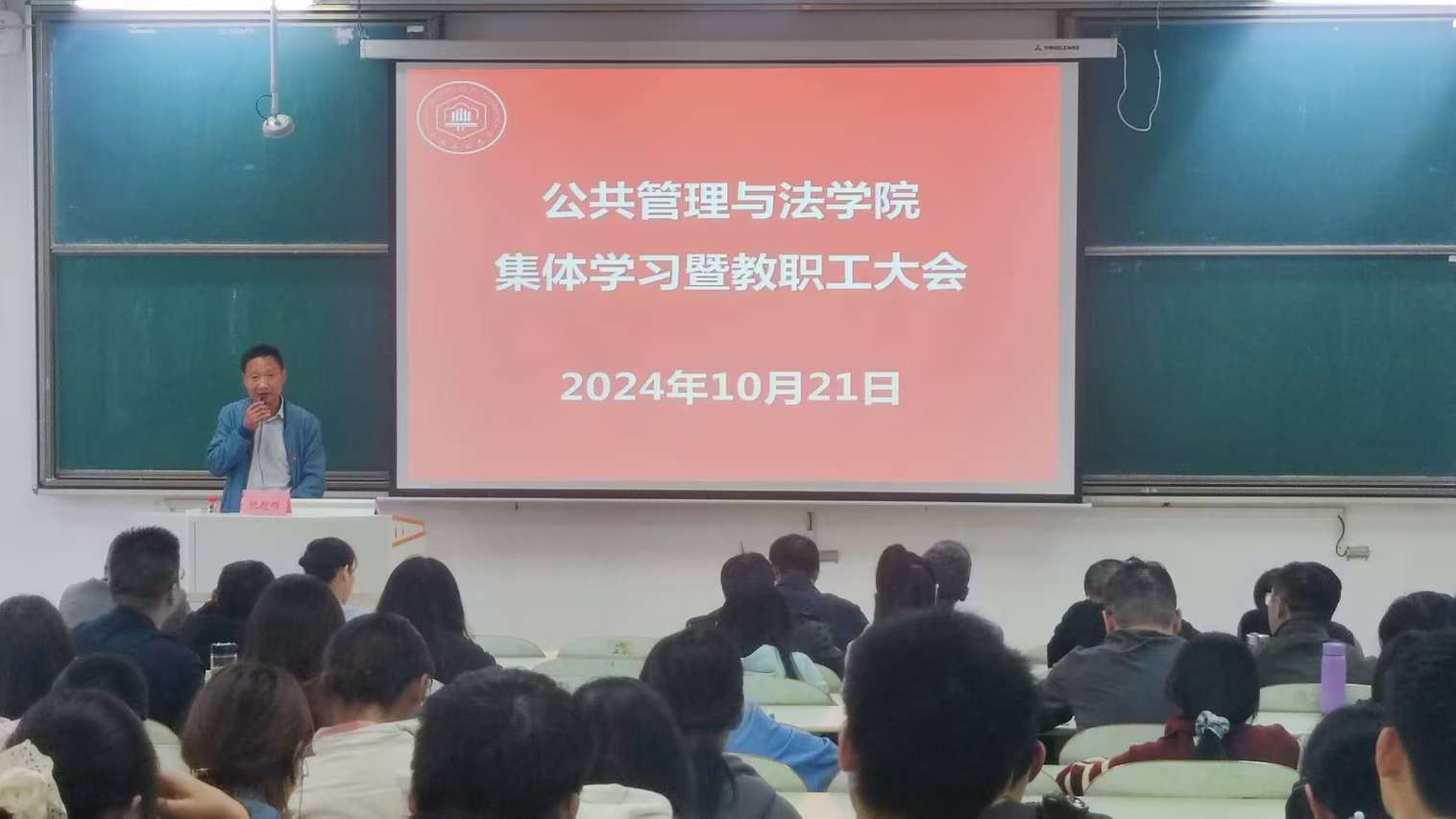 在佳山校区教三南202召开集体学习暨教职工大会。海豚直播