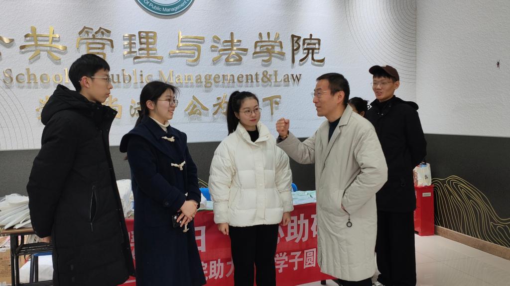领导老师深入学生之中,为考研学子发放考研礼包,送上了温暖的问候与亲切的祝福。海豚直播