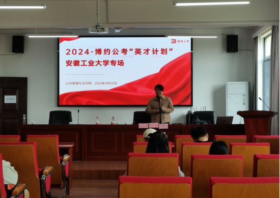 发展。博约公考向在场学生详细介绍博约公考相关情况,展示了公司优越的地理位置、丰富的教师资源以及良好的发展前景,并对员工的职业发展、招聘岗位、薪资福利和招聘流程向在场同学做了详细的介绍。