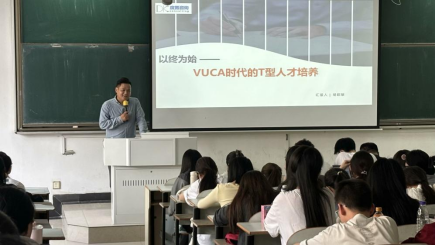 于2024年10月12日在佳山校区教三南202举办“以终为始——VUCA时代的T型人才培养”学术讲座,特邀请安徽度氪管理咨询有限公司总经理胡皖敏主讲,海豚直播