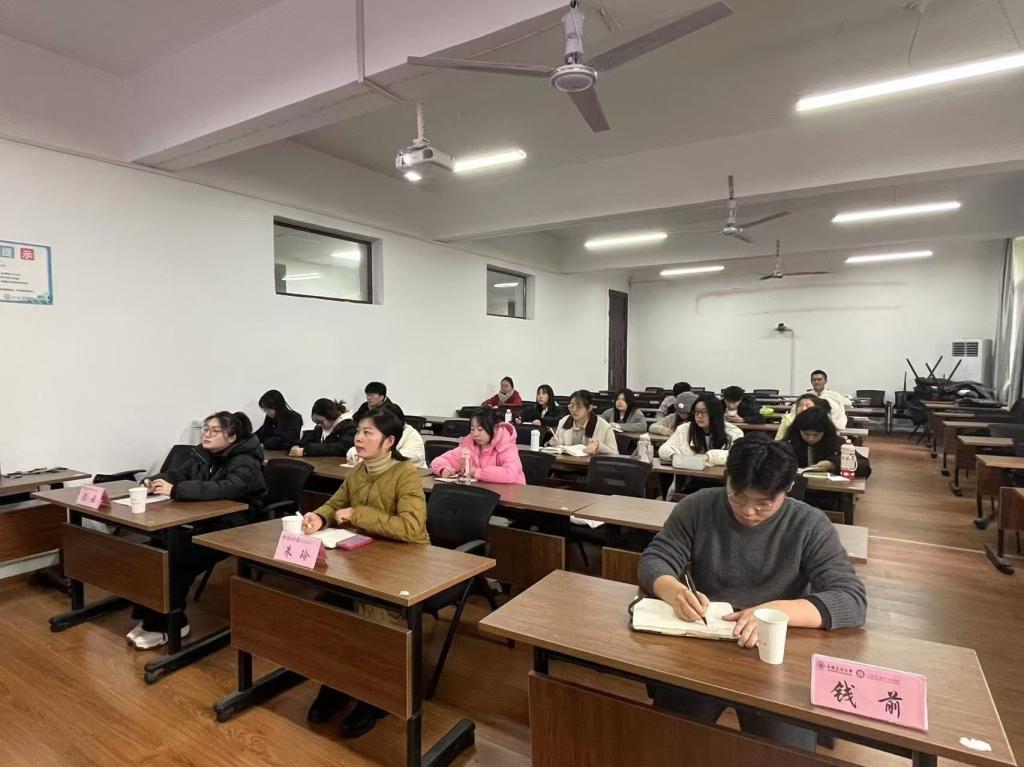团学工作负责人钱前、23级学生辅导员朱玲、22级学生辅导员陈云和各班级思政委员共同参加。习研会负责人任逸鸣主持本次培训讲座。