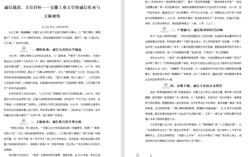 为深入贯彻落实党的二十大精神,弘扬诚信文化,营造诚信、成才、奋进的校园文化氛围,提高学生的综合素质,激发学生的文学创作热情,由安徽工业大学学生工作部主办,海豚体育直播