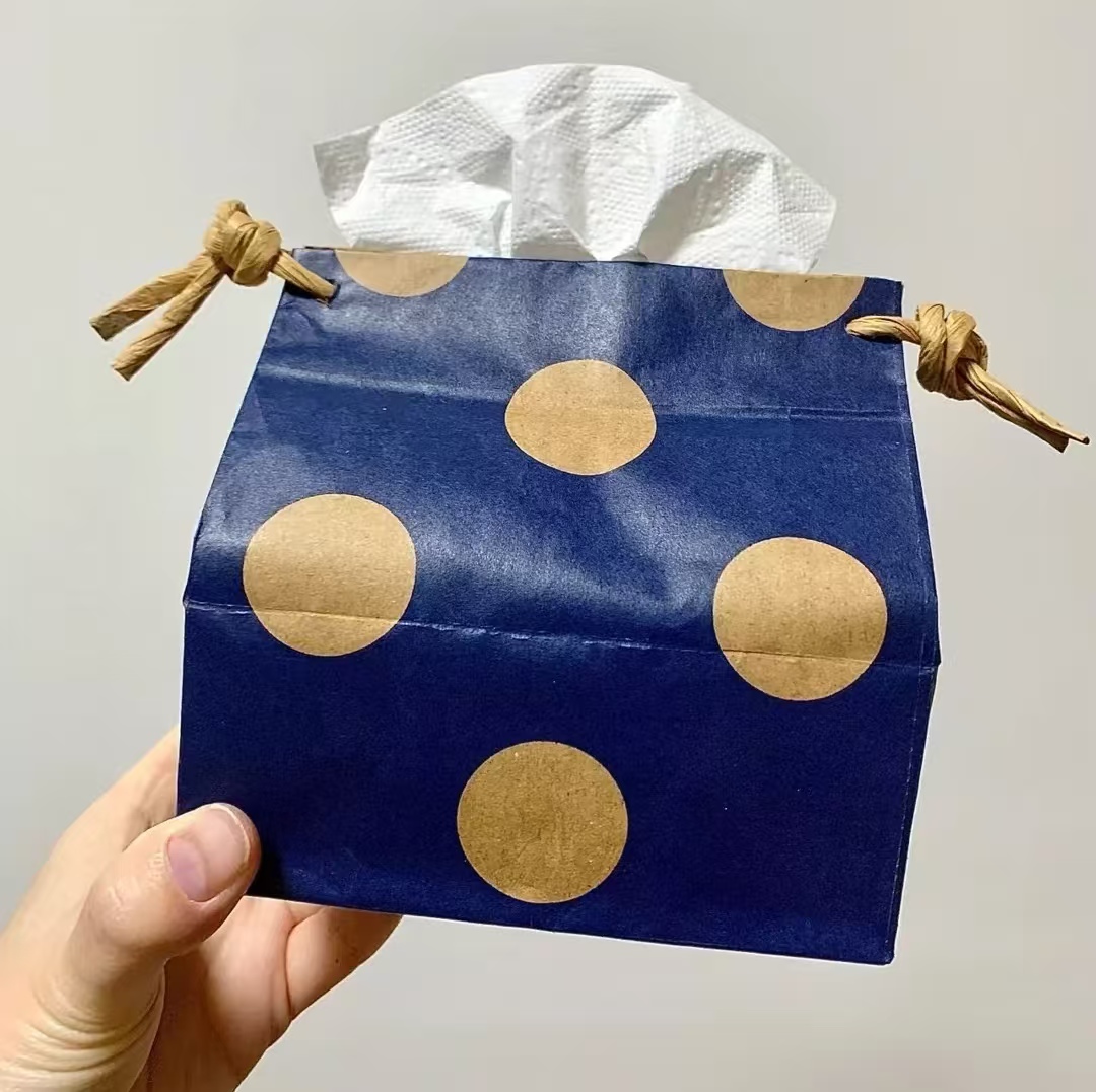 (图为利用包装袋改装纸巾盒)