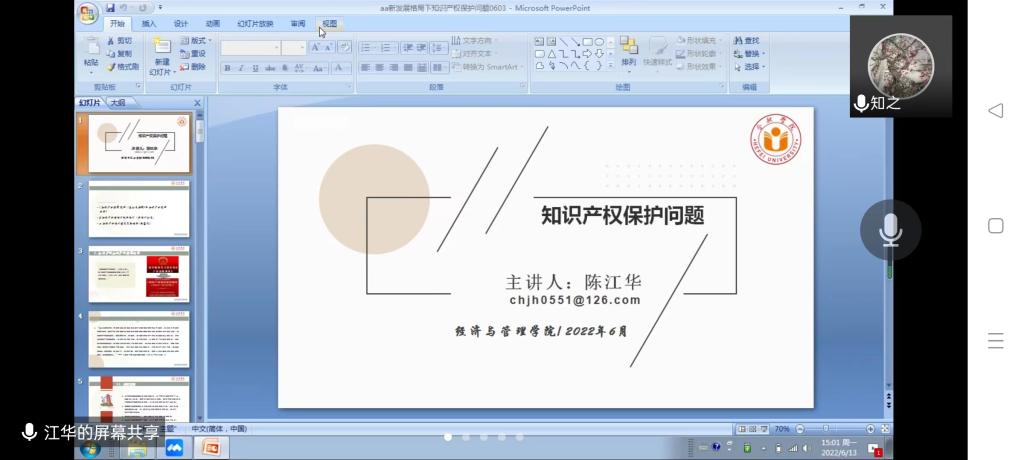 院长陈江华教授,于线上开展关于“知识产权强国背景下的知识产权保护”专题讲座,讲座由戚枝淬老师主持,海豚体育直播