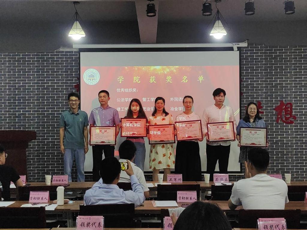 获奖的师生代表依次上台领奖并合影留念。