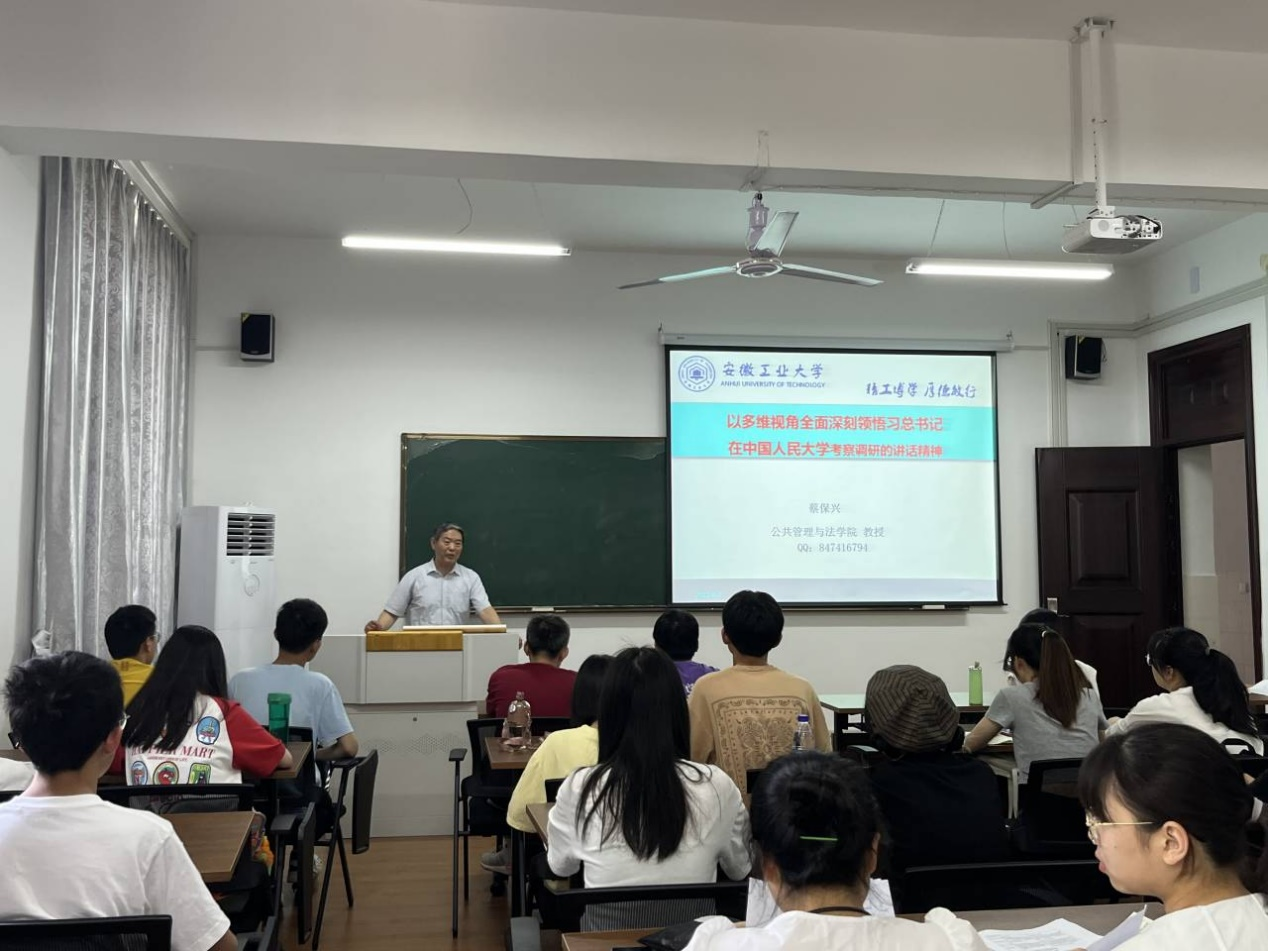 蔡教授讲座的主题是以多维视角全面深刻领悟总书记在中国人民大学考察调研的讲话精神。蔡教授从大历史观、两个历史交汇期、国内外现实形势三个宏观视角对党史、中国近现代化史和社会主义发展史等进行深刻解读,从多维视角带领同学们深刻领会习近平总书记在中国人民大学的讲话精神。最后,蔡教授与现场学生进行交流互动,并以“大学生该如何一步步实现自身价值”这一命题的回答结束。蔡教授的讲座旁征博引,视野宏大,理论功底深厚,逻辑性强,受到与会学生的欢迎。