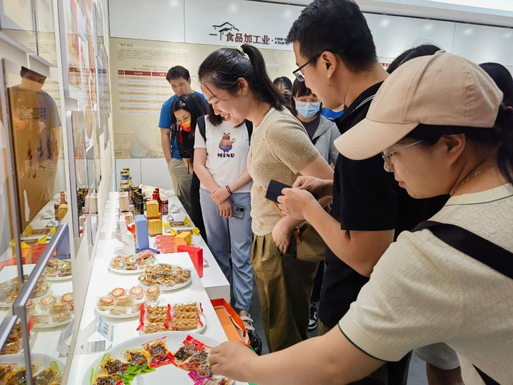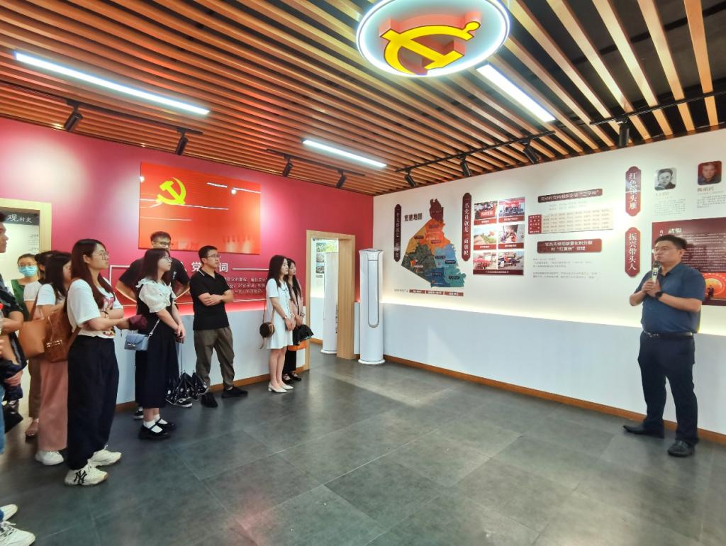 师生一行调研黄池镇的农产品展示中心,听取了黄池镇镇长黄英、副镇长汪甜甜关于黄池镇特色产业和红色历史文化旅游等方面的介绍,了解黄池镇特色食品企业生产加工的茶干、酥饼加工工艺,如何与乡村振兴发展有效衔接,师生一行真切实在地感受到这个小镇独有的文化自信与热情。农村电商孵化基地——劳动村是黄池镇推进乡村振兴有效抓手,该村在共同富裕方面做出一系列尝试,取得了珍贵的样板经验。其中,乡村振兴馆生动展示了劳动村积极带动“农业强、农村美、农民富”的实践经验和具体做法。扎实推进党建引领信用村建设工作,提升乡风文明评议质效;利用“五种模式”跑出村集体经济发展加速度;建立生产、加工、销售一体化产业链条,促进“三产”融合,不断壮大村集体经济,为乡村有效治理注入强大动能。在与黄池镇有关负责人、村干部和指导教师的深入交流中,同学们对共同富裕、乡村治理有了更加全面的了解。