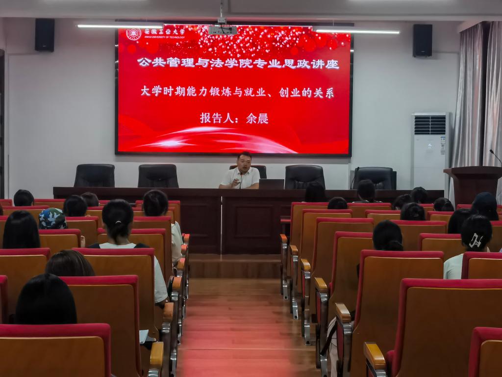 在2023年9月19日开展以“大学时期能力锻炼与就业、创业的关系”为主题的专业思政讲座。本次讲座由问延安老师主持,余晨学长主讲。