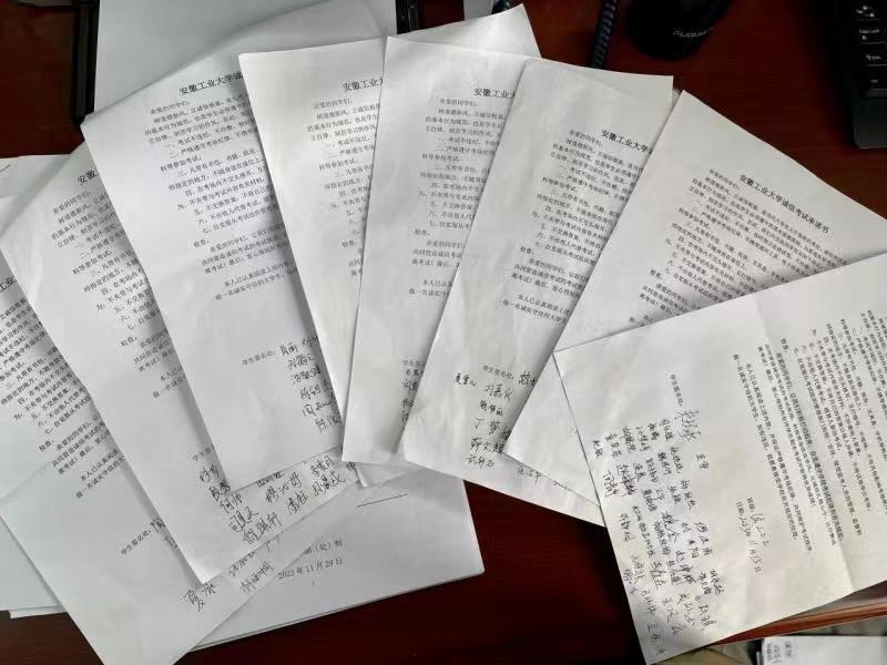 会后,就进一步加强考风考纪教育,各年级辅导员通过年级会、班会等形式对考风考纪等相关事宜进行了提醒,告诫同学们不要触碰违规违纪的红线,认真备考,诚信考试,并组织班级学生签订了诚信考试承诺书。