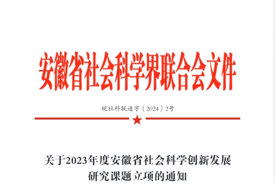 2024年2月5日,安徽省社会科学界联合会发布了《关于2023年度安徽省社会科学创新发展研究课题立项的通知》(皖社科联通字〔2024〕2号),公布了安徽省社会科学创新发展研究课题项目立项名单。海豚体育直播
