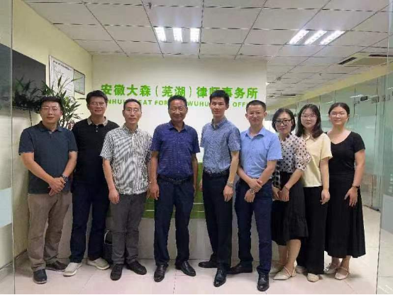 在安徽大森(芜湖)律师事务所,大森律所人力资源总监刘郁芳,大森(芜湖)律所高级合伙人费亮亮律师、杨天柱律师与海豚直播