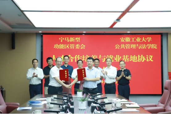 领导班子全体成员陪同校学工部负责人至马鞍山市宁马新型功能区考察调研,并签署人才合作培养与就业基地协议。宁马新型功能区党工委副书记、管委会专职副主任申凯,党工委委员、管委会副主任何耀,博望中安振兴副总经理刘飒,以及宁马新型功能区经济发展局、区域合作局、人才综合服务中心等部门负责人陪同调研和参加签约仪式。