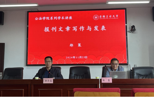 在公法楼301报告厅举办题为“报刊文章写作与发表”的学术讲座。皖西日报社总编室郑策主任应邀主讲。院专业学位研究生、学术型研究生参加此次学术活动,院长徐济益主持了报告会。
