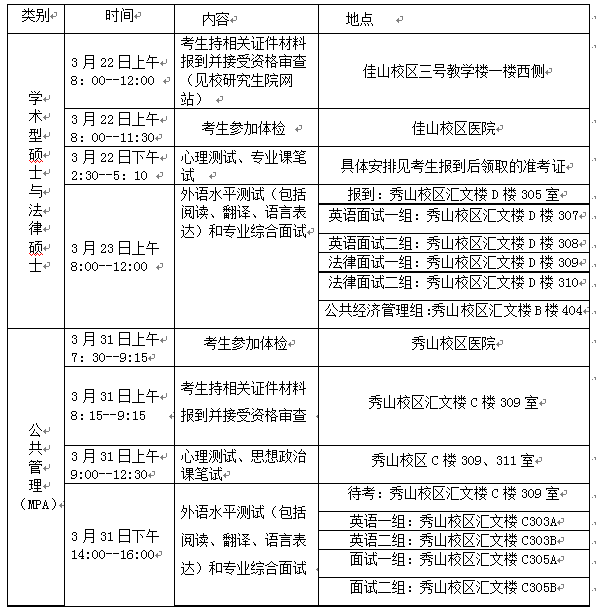 公共经济管理、社会政策与社会法、法律硕士(法学、非法学)、公共管理硕士(MPA)复试加试课目、外语成绩、综合面试直接以100计算。