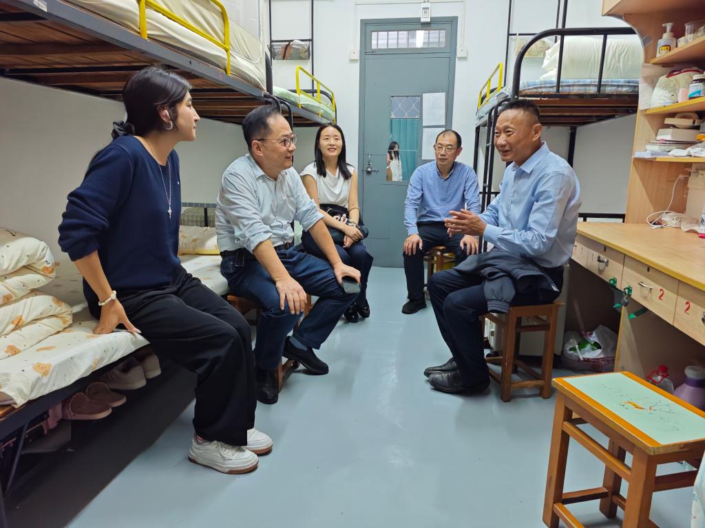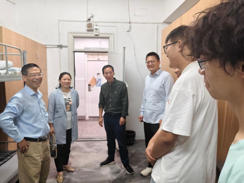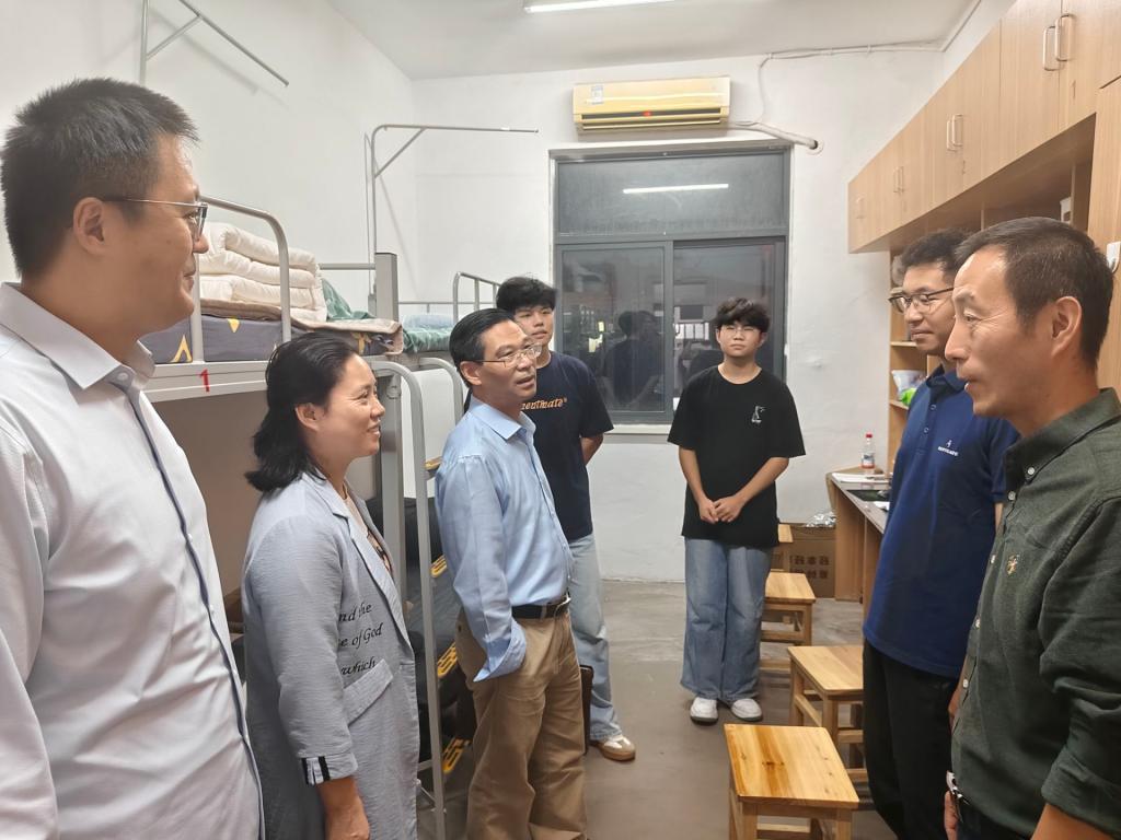 党委书记胡正友,党委副书记、纪委书记、学生工作副院长周浩然,正处级组织员江文丽,副院长王务均,以及新生辅导员邢维迢、王秋丽陪同走访。